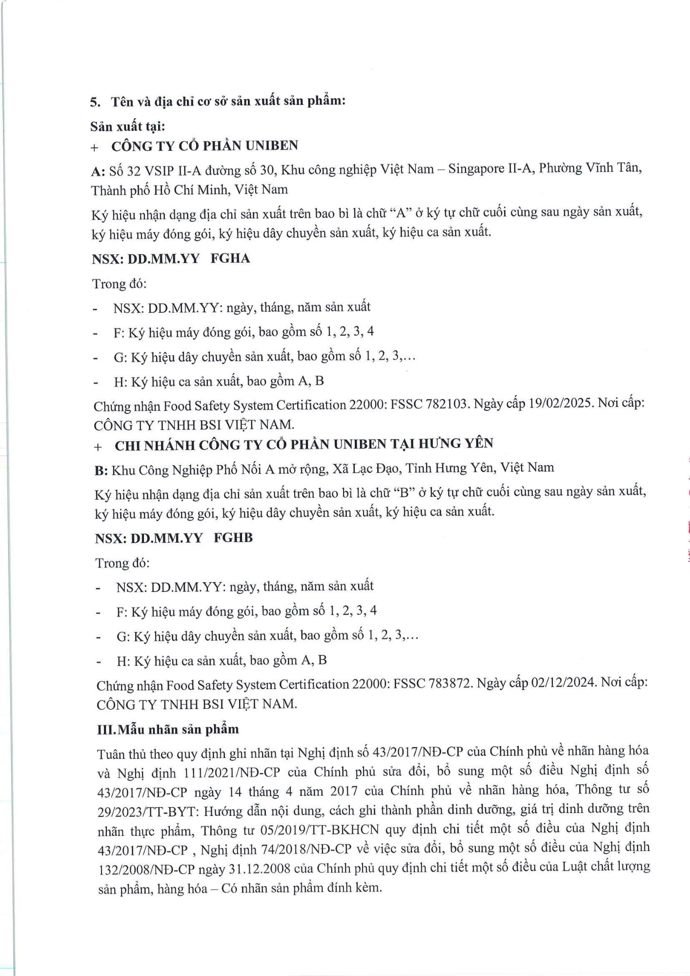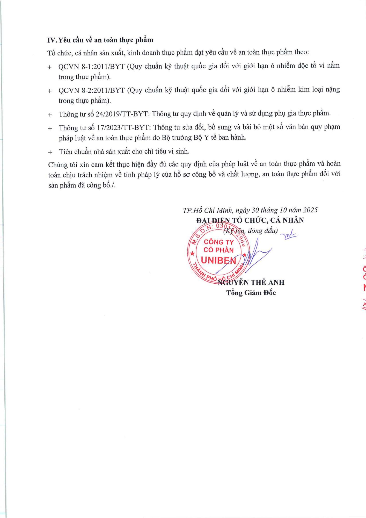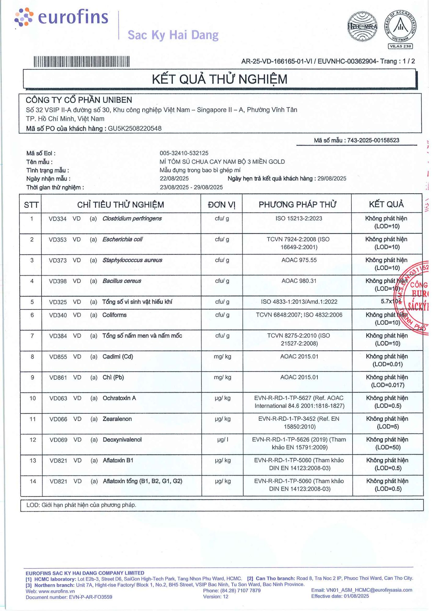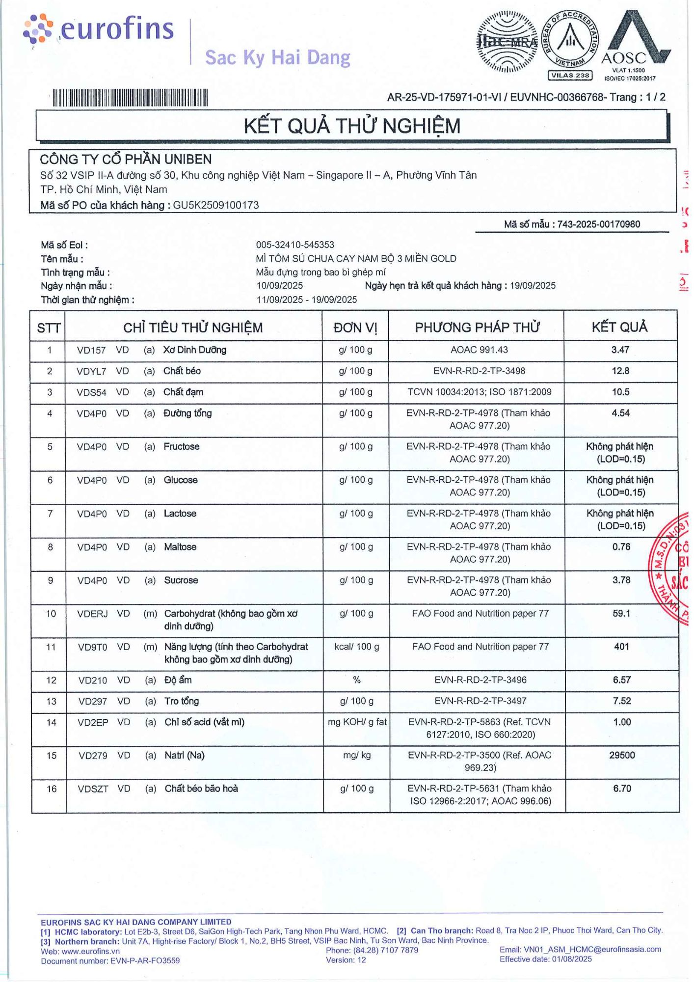 Bản tự công bố sản phẩm Mì Tôm Sú Chua Cay Nam Bộ 3 Miền Gold 25/11/2025