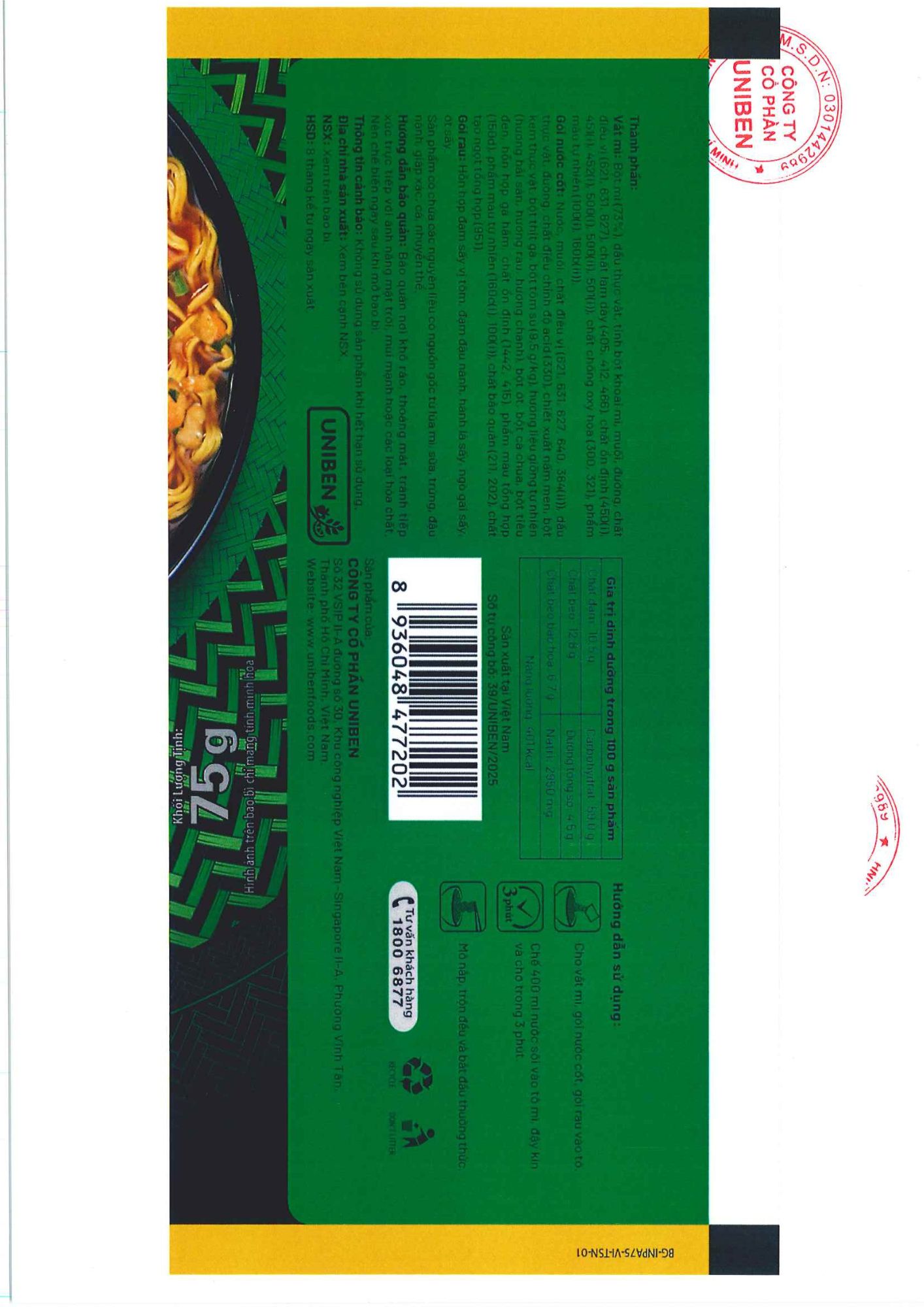 Bản tự công bố sản phẩm Mì Tôm Sú Chua Cay Nam Bộ 3 Miền Gold