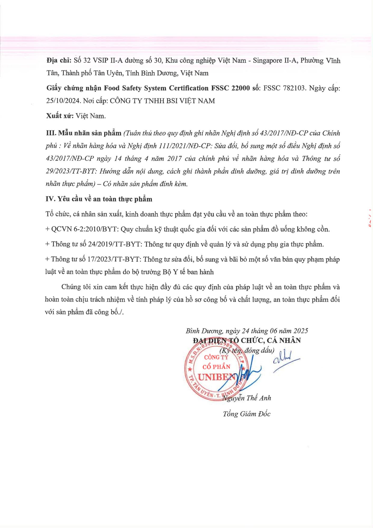 Bản tự công bố sản phẩm Nước Chanh Dây Joco